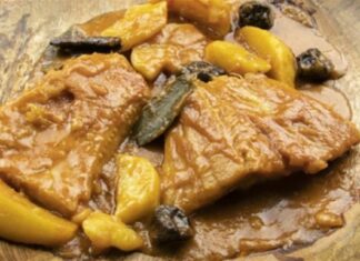 Αγιορείτικος μπακαλιάρος “λουκούμι” με πατάτες, κανέλα και δαμάσκηνα