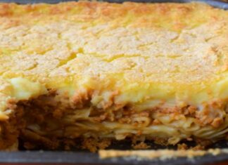 Νηστίσιμο παστίτσιο με πουρέ πατάτας και κιμά σόγιας