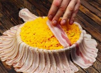 Γέμισε το ταψί με τυρί και πατάτες, το σκέπασε με μπέικον και το...