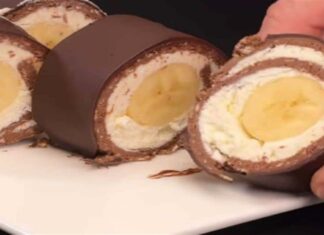 Απίστευτο γλυκό ψυγείου με μπανάνα και λιωμένη σοκολάτα! Χωρίς ψήσιμο, χωρίς ζελατίνη! Θα σας δείξουμε πώς να φτιάξετε ένα λαχταριστό ρολό μπανάνας σοκολάτας! Με την ευκαιρία, δείτε την συνταγή για κολασμένο γλυκό ψυγείου μπισκότα βουτύρου έτοιμο σε 15'.Αυτή η γρήγορη και εύκολη συνταγή μπορεί να γίνει από οποιονδήποτε στο σπίτι, ακόμα κι αν δεν έχετε μαγειρικές ικανότητες! Είμαστε σίγουροι ότι όλ...