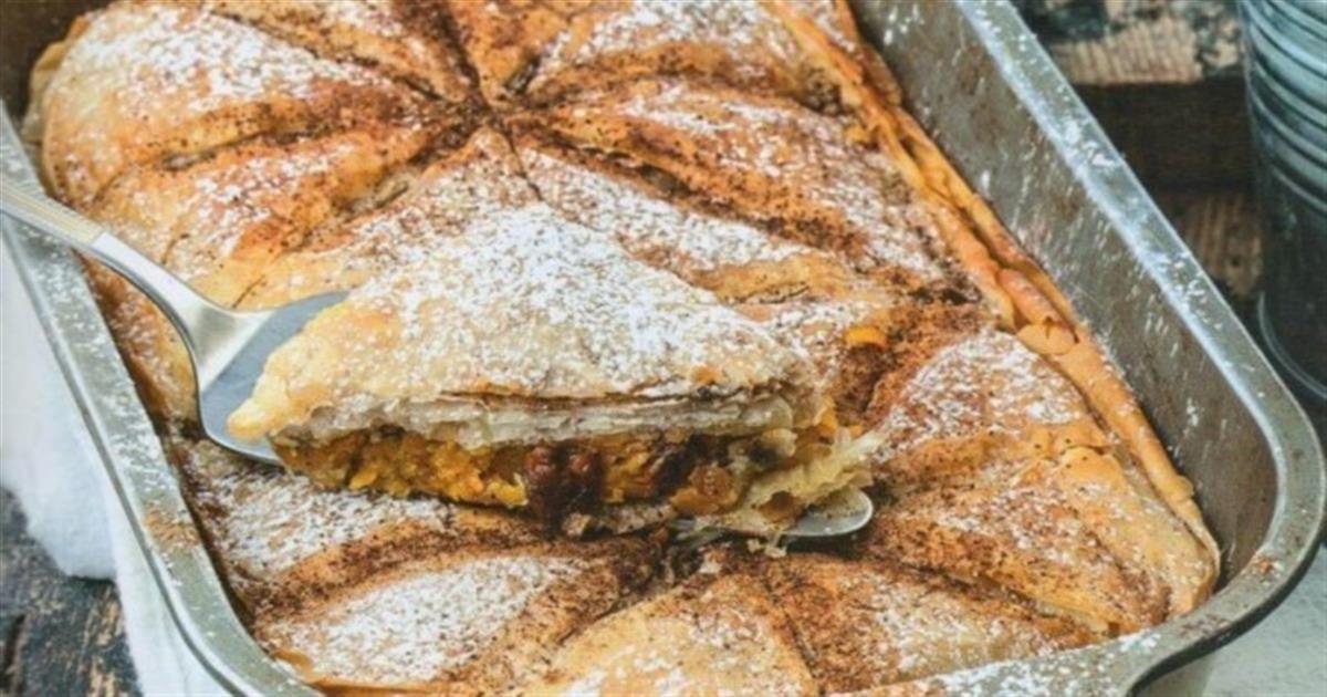 Μπουρέκι που όταν το γεύεσαι, απολαμβάνεις σε κάθε μπουκιά το μοναδικό συνδυασμό της γλυκιάς κολοκύθας και του μήλου, με το τραγανό φύλλο να κάνει τη διαφορά. Την βρήκαμε στο argiro.gr