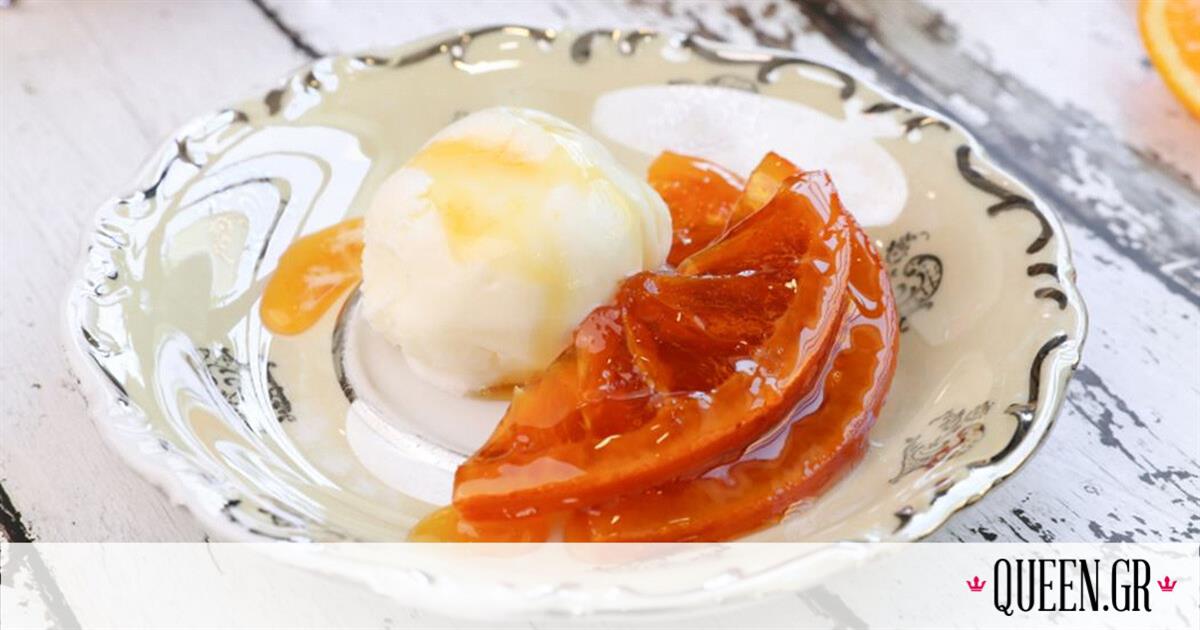 400 γρ. πορτοκάλι, κομμένο σε λεπτές ροδέλες και στη μέση