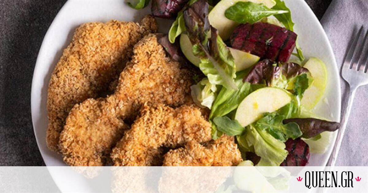 Σκεφτόσουν να φτιάξεις κάτι ελαφρύ για μεσημέρι, αλλά δεν ήξερες τι; Ο Άκης Πετρετζίκης σού προτείνει σνίτσελ γαλοπούλας με σαλάτα.
