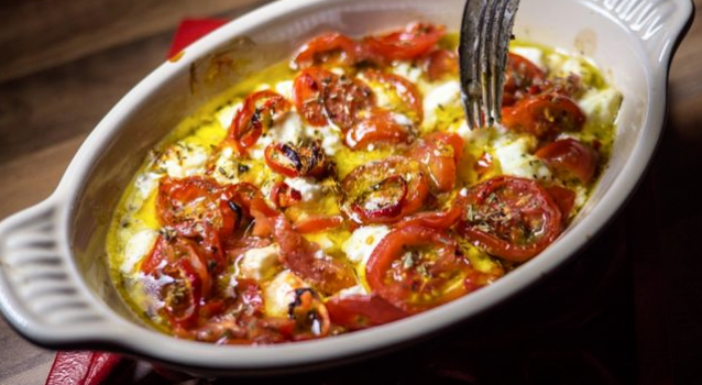 – Ψήνετε σε προθερμασμένο φούρνο μέχρι να ψηθούν οι ντομάτες. Δηλαδή, ψήνετε έως ότου πάρει χρυσό χρώμα το τυρί.