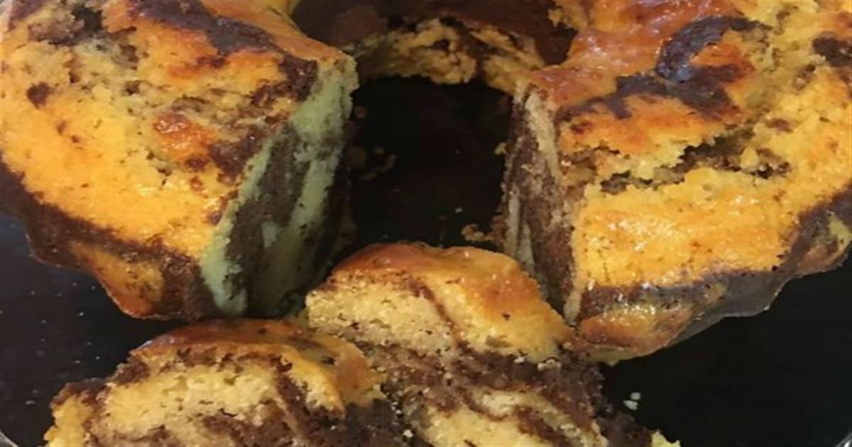 - Βάζουμε σε φόρμα στρογγυλή την οποία έχουμε αλευρώσει και ρίχνουμε πρώτα το λευκό μείγμα και κατόπιν το σοκολατένιο, ψήνουμε στους 180 μέχρι να βγάζουμε από το κέντρο το μαχαίρι στεγνό (στη δοκιμή ψησίματος).