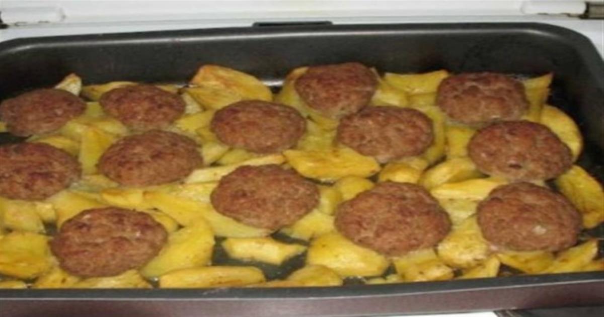 Μπιφτέκια αφράτα με πατάτες στο φούρνο