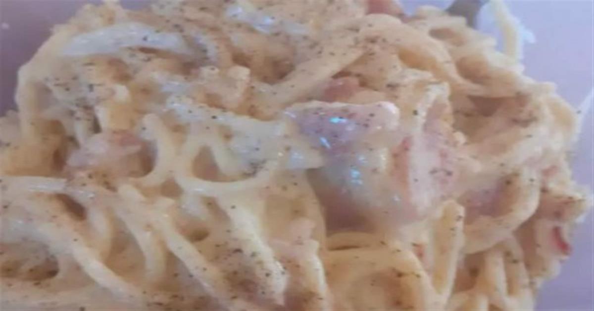Μακαρόνια με κοτόπουλο, κρέμα γάλακτος και μπέικον
