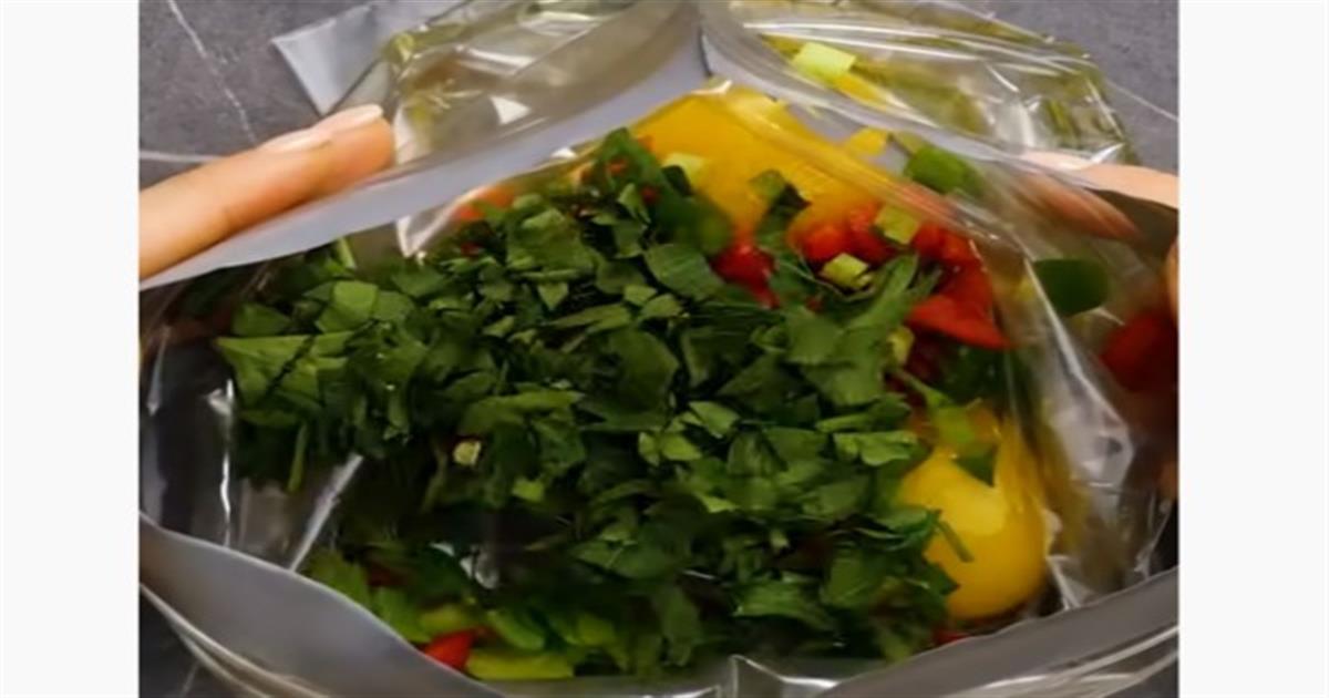 Βάζει σε μια σακούλα αυγά και λαχανικά, στη συνέχει τη βουτάει σε βραστό νερό – Το αποτέλεσμα θα σας εκπλήξει!