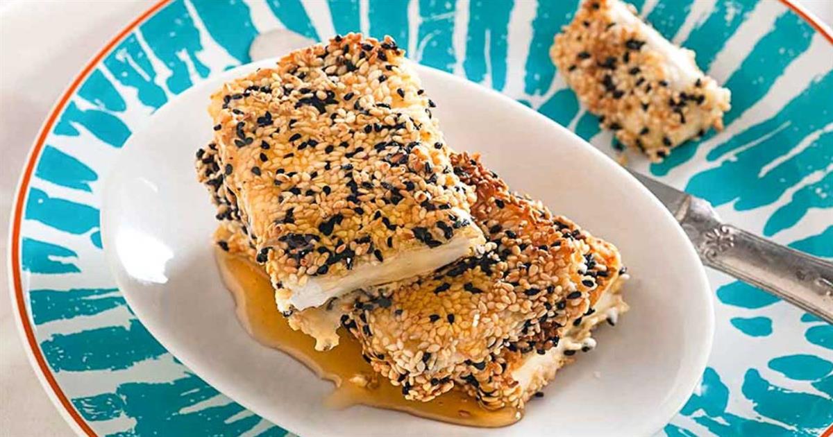 Η Αργυρώ Μπαρμπαρίγου μας δίνει τη συνταγή της για φέτα σαγανάκι με σουσάμι και θυμαρίσιο μέλι. Ένας υπέροχος συνδυασμός αλμυρού και γλυκού, ιδανικός για κάθε τραπέζι.