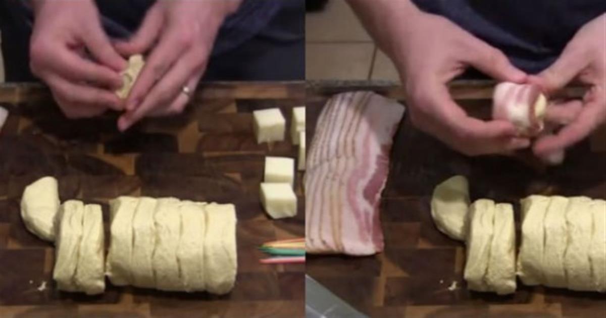 Γεμίζει κομματάκια ζύμης με τυρί και τα τυλίγει με μπέικον – Θα γλείφετε τα δάχτυλά σας