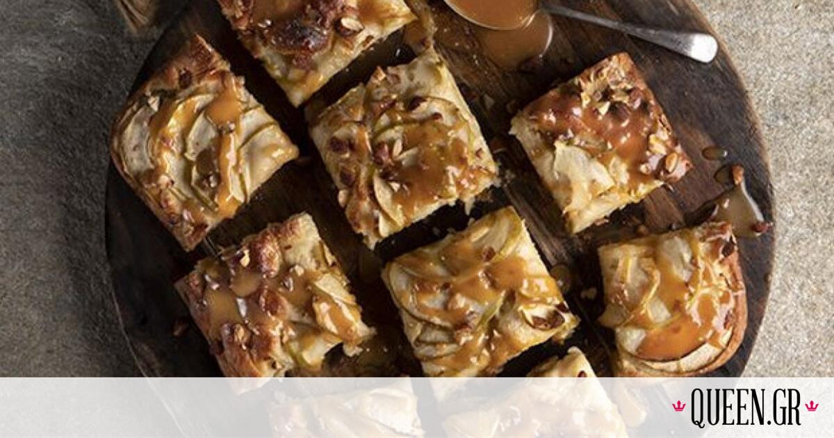 Αυτή είναι η πιο νόστιμη συνταγή με μήλα και καραμέλα πάνω σε ένα φτιαχτό ζυμαράκι φοκάτσιας.