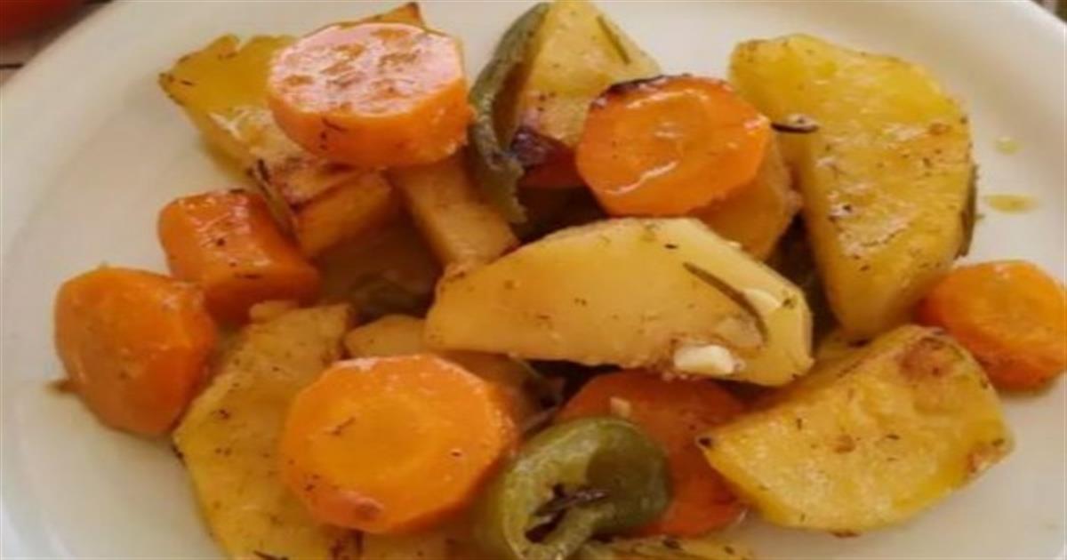Μελωμένες πατάτες με καρότα στο φούρνο