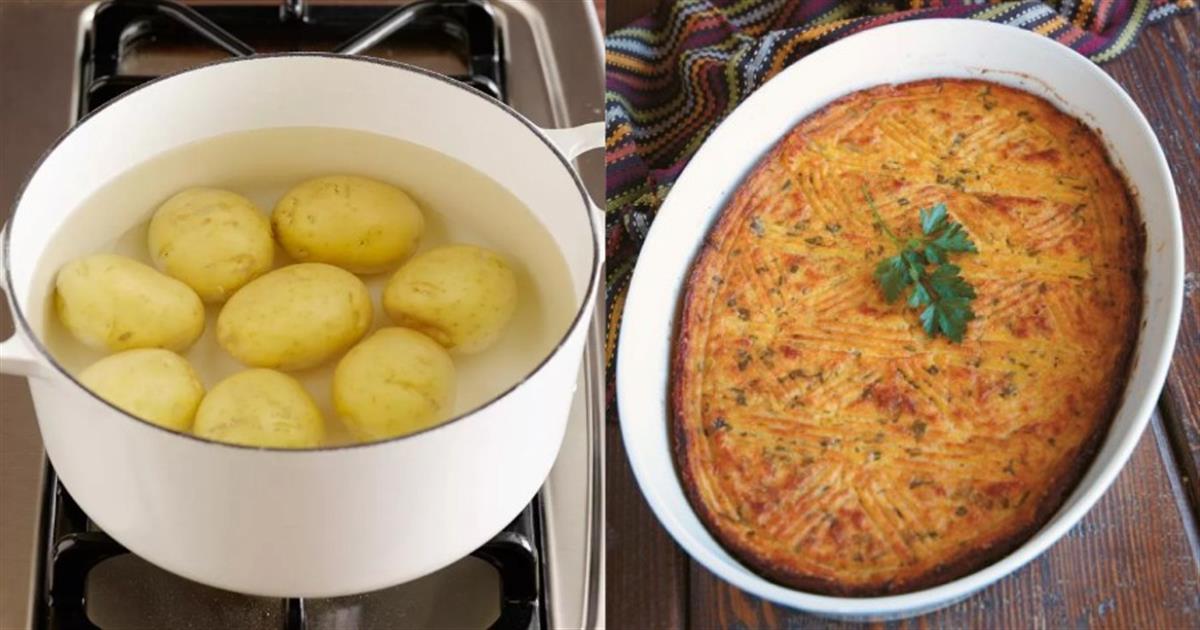 2. Βράζουμε τις πατάτες και τις πατάμε με ένα πιρούνι να λιώσουν.