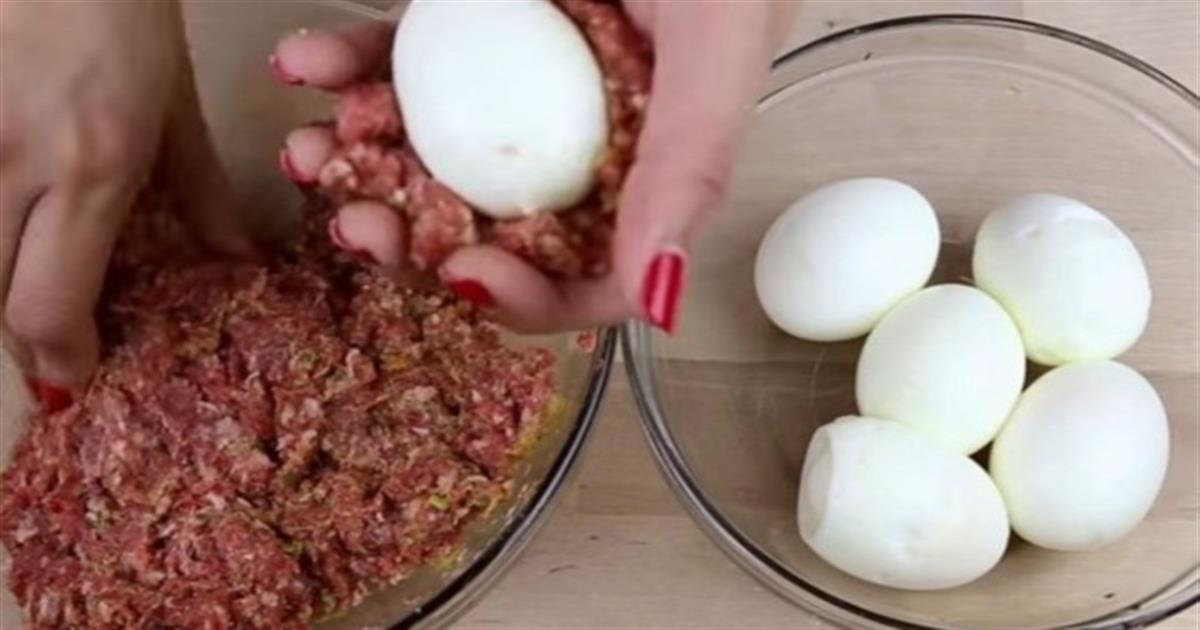 Παίρνει κιμά, τον τυλίγει σε βραστά αυγά και τα ρίχνει στο τηγάνι! Το αποτέλεσμα είναι θεϊκό!
