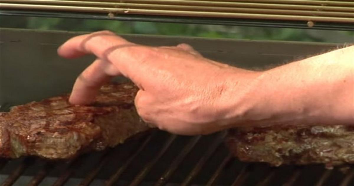 Καθώς η μπριζόλα ψήνεται πάνω στη σχάρα την πατάει απαλά με το δάχτυλό του. Το αποτέλεσμα; Τρομερό