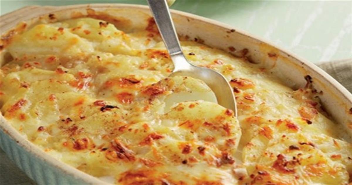 - Καθαρίζουμε τις πατάτες και τις κόβουμε σε ροδέλες όπως για τον μουσακά. Τις αραδιάζουμε σε ένα ταψί και τις περιχύνουμε με το εβαπορέ γάλα.