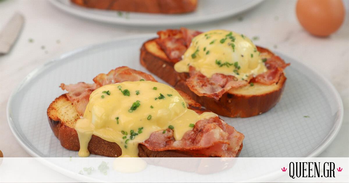 ΥΛΙΚΑ4 φέτες τσουρέκι8 φέτες μπέικον4 αυγά, medium1 κ.σ. ξύδι Για την ολαντέζ (Hollandaise):150 γρ. βούτυρο, λιωμένο2 κρόκους αυγού (medium)2 κ.σ. νερό1 κ.σ. λευκό ξύδι1 κ.γ. χυμό λεμονιούΑλάτιΠι…