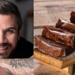 – Ρίχνουμε το σοκολατένιο γλάσο, που είναι ζεστό και το αφήνουμε στην άκρη.