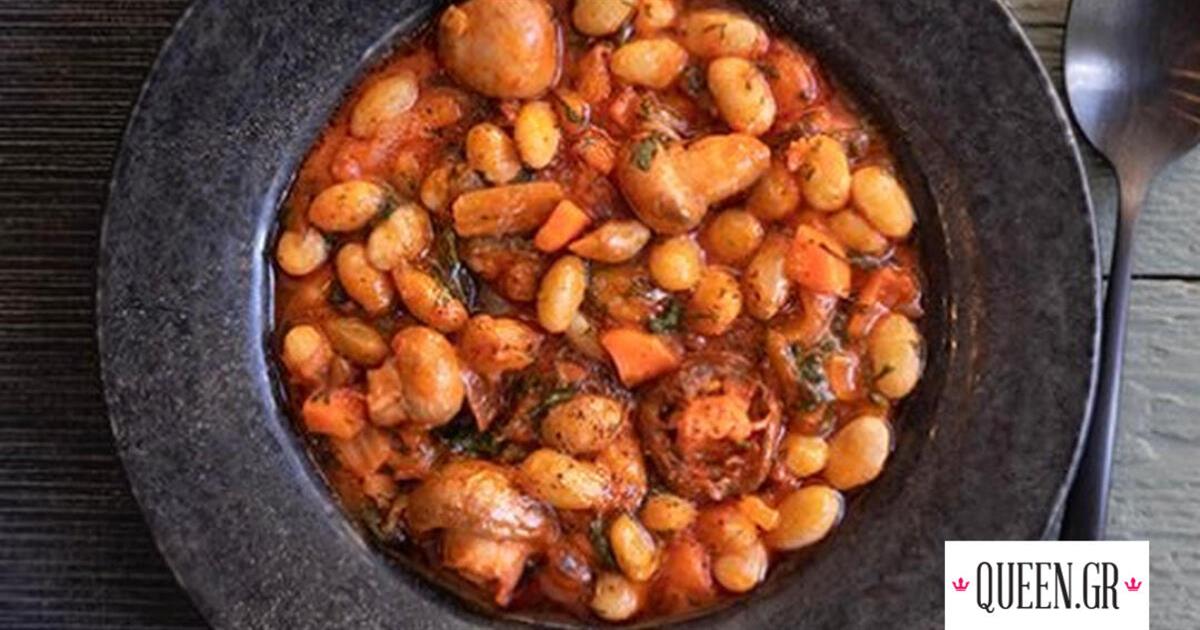 Φασόλια χάντρες κοκκινιστά με λαχανικά από τον Άκη Πετρετζίκη. Φτιάξε ένα θρεπτικό φαγητό με λαχανικά, όσπρια και σάλτσα ντομάτας.