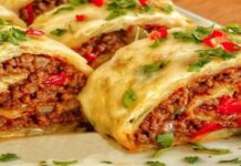 - Προσθέτουμε στο μείγμα τα μισά φύλλα κρούστας και συνεχίζουμε το ανακάτεμα μέχρι να ενωθούν τα υλικά.