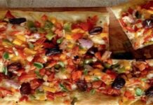 – Στρώνουμε τα υλικά μας σε φόρμα 30×11 εκατοστά με αντικολλητικό χαρτί.