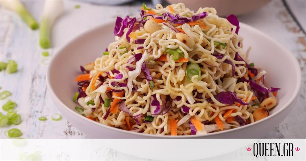 250 γρ. noodles ρυζιού300 γρ. κόκκινο λάχανο, κομμένο σε λεπτές κάθετες φέτες200 γρ. άσπρο λάχανο, κομμένο σε λεπτές κάθετες φέτες100 γρ. φρέσκο κρεμμύδι, κομμένο σε ροδέλες60 γρ. αμύγδαλο, καβουρδισμ…