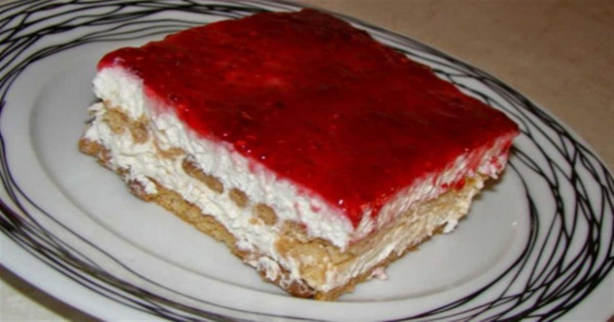Συνεχίζετε με το υπόλοιπο μείγμα και ισιώνετε το μείγμα. Επικαλύπτετε με τη μαρμελάδα και την απλώνετε καλά. Αφήνετε στο ψυγείο για 6-8 ώρες να δέσει καλά και να μαλακώσουν τα μπισκότα.