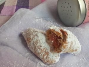 – Πλάθω σε μπαλίτσες τις οποίες ανοίγω με πλάστη και βάζω στη μέση γέμιση. Τα κλείνω σαν μισοφέγγαρα και τα βάζω σε λαδόκολλα οπού ψήνω στους 180 βαθμούς για μισή ώρα.