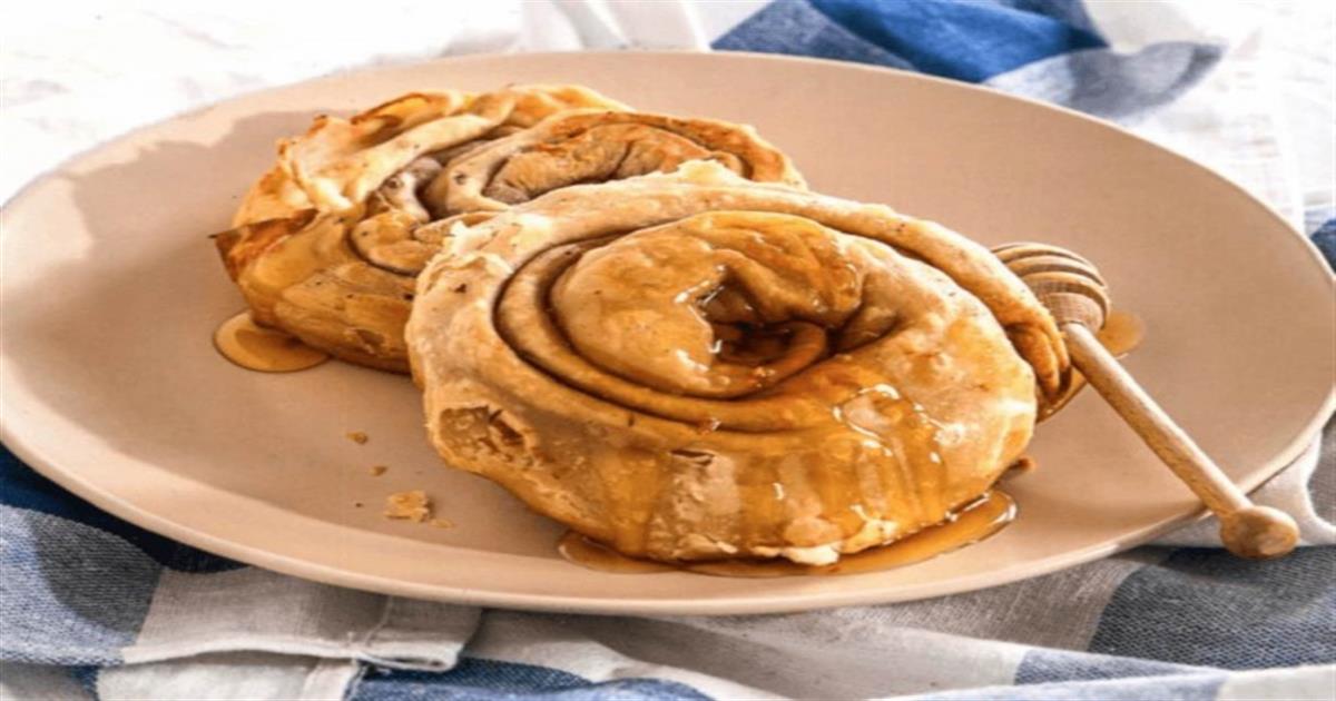 Στριφτή σκοπελίτικη τυρόπιτα στο τηγάνι, περιχυμένη με μέλι από την Αργυρώ