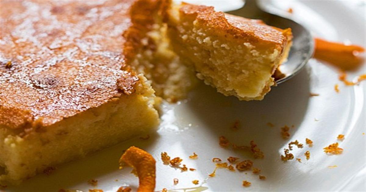 - Μεταφέρουμε το γλυκό σε βουτυρωμένο χαμηλό ταψάκι διαστάσεων περίπου 35 x 25 εκ. και ψήνουμε για περίπου 50 λεπτά, μέχρι να ροδίσει