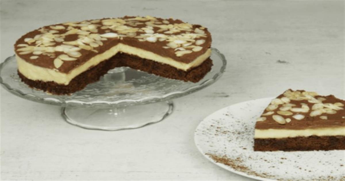 • Από πάνω απλώνουμε την κρέμα κακάο και αμύγδαλα φιλέ.