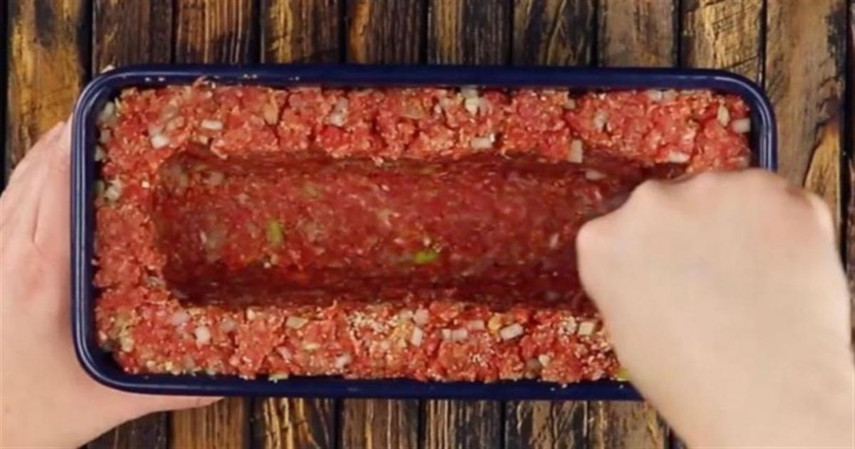 Γεμίζει μια φόρμα του κέικ με κιμά – Μόλις δείτε με τι γέμισε το κέντρο θα σας τρέξουν τα σάλια!