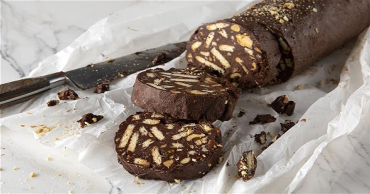 Μεταφέρετε όλο το μείγμα σε ένα κομμάτι αντικολλητικό χαρτί. Δώστε του μακρόστενο σχήμα με τα χέρια σας και τη βοήθεια της λαδόκολας. Κλείσε με το αντικολλητικό χαρτί και βάλε στην κατάψυξη για να κρυώσει.