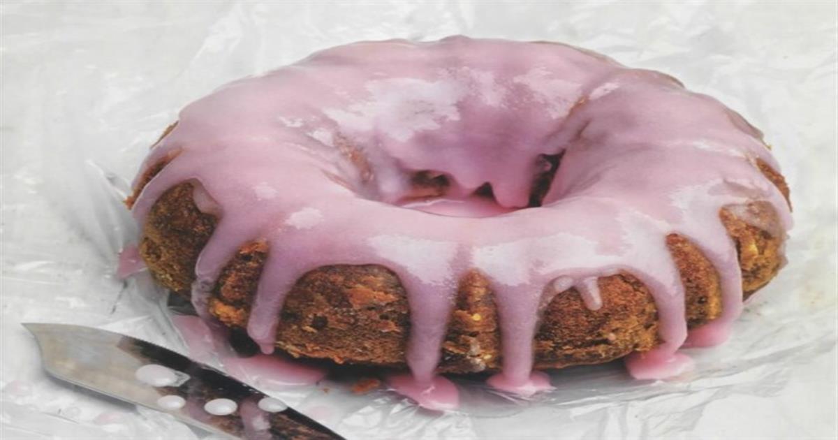 - Ψήνουμε για 55΄περίπου, μέχρι να βγαίνει καθαρή η λάμα του μαχαιριού. Αφήνουμε να κρυώσει για λίγο και το βάζουμε σε σχάρα. Τρυπάμε με σουβλί την επιφάνεια. Περιχύνουμε κουταλιές από ζεστό σιρόπι. Περιχύνουμε με το ροζ γλάσο. Το παγώνουμε για 30΄και σερβίρουμε.
