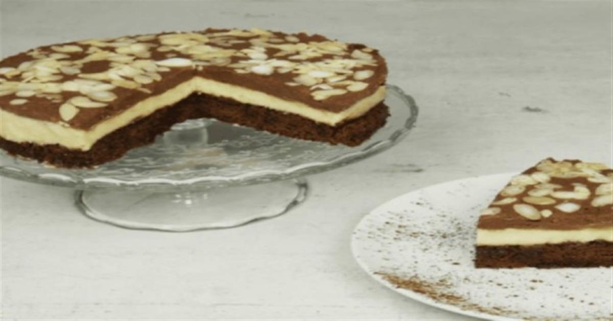- Από πάνω απλώνουμε την κρέμα κακάο και αμύγδαλα φιλέ.