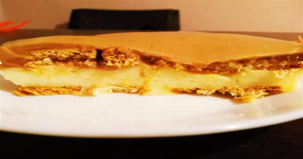 • Ανακατεύουμε ώσπου η κρέμα κοχλάσει και δέσει. Αφήνουμε λίγα λεπτά και έπειτα την προσθέτουμε πάνω από τα μπισκότα. Το αφήνουμε στην άκρη να έρθει σε θερμοκρασία δωματίου.