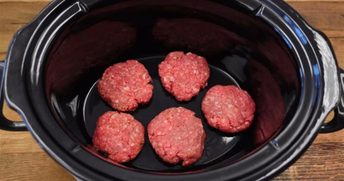 1. Ανακατέψτε όλα τα υλικά για τα μπιφτέκια και φτιάξτε μικρά μπιφτεκάκια με πάχος 2 εκατοστά. 2. Βάλτε μια στρώση κρεμμύδια και μανιτάρια στον αργό μάγειρα.