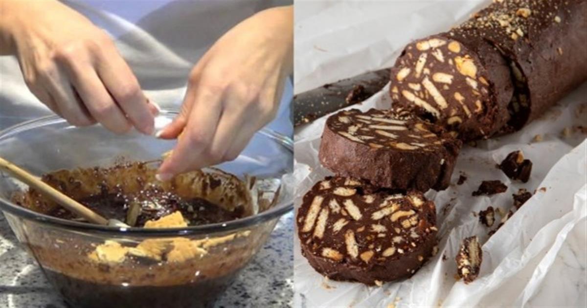 - Ρίξτε το μείγμα σε ένα κομμάτι αντικολλητικό χαρτί και δώστε του μακρόστενο σχήμα. Τυλίξτε καλά και βάλτε τον κορμό στην κατάψυξη μέχρι να ομογενοποιηθεί.Όταν περάσει το δίωρο στην κατάψυξη το μεταφέρετε στο ψυγείο και είναι έτοιμο για κόψιμο.