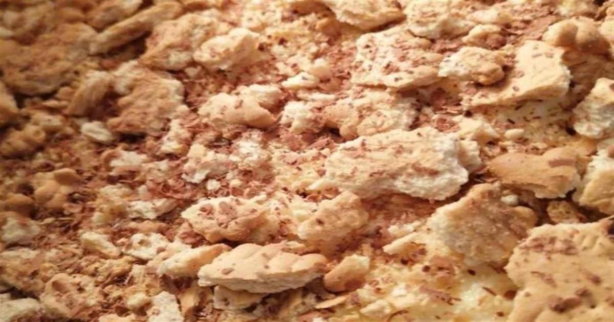 - Τοποθετουμε σε ενα πυρεξ μια στρωση μπισκοτα