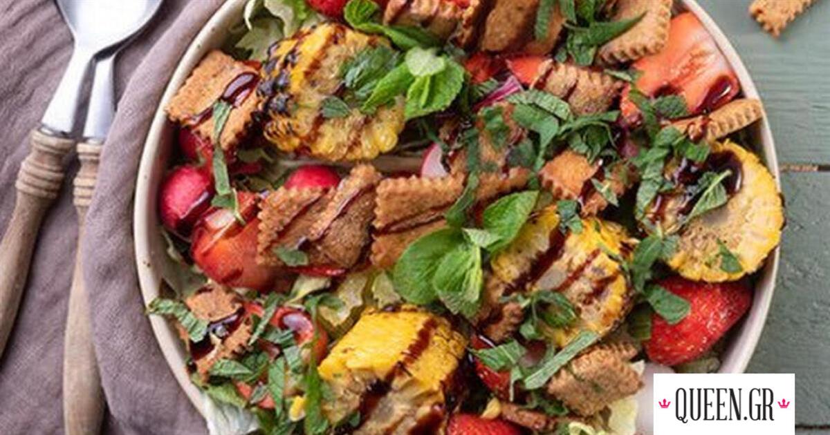 Ανοιξιάτικη σαλάτα με κράκερ βαλσάμικου από τον Άκη Πετρετζίκη. Φτιάξε μια νόστιμη σαλάτα με τραγανά κράκερ, ραπανάκια και φράουλες.