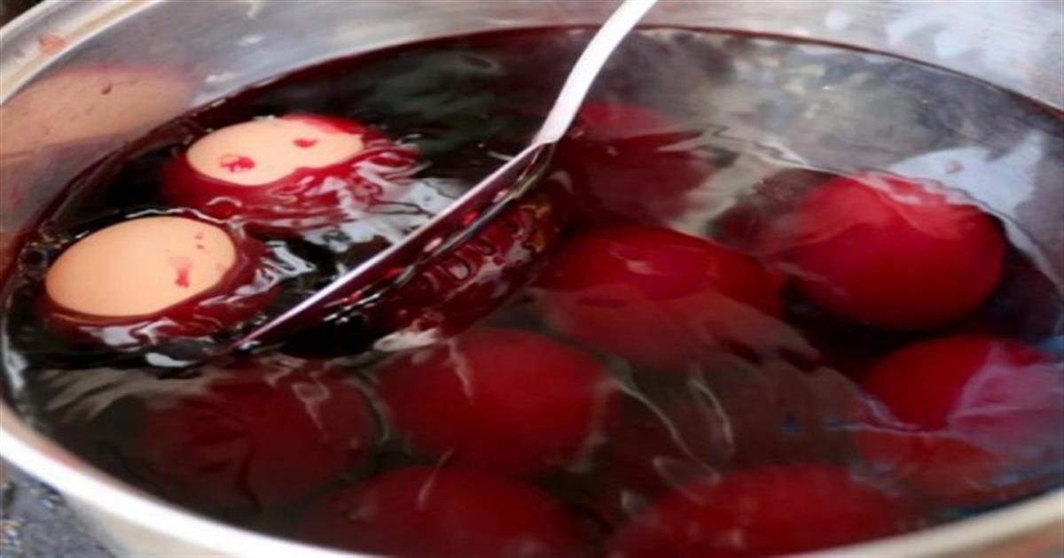 Για να μην λερωθούμε όταν βάφουμε τα πασχαλινά αυγά φοράμε πλαστικά γάντια σε όλη τη διαδικασία. Επίσης χρησιμοποιούμε κουτάλι (ή τρυπητή κουτάλα), όταν θέλουμε να βγάλουμε τα αυγά από τη βαφή. Κι αν παρόλα αυτά μείνουν κόκκινοι λεκέδες στα χέρια μας; Τότε φτιάχνουμε ένα scrub με ζάχαρη + λάδι + λεμόνι (σε ίσες αναλογίες) και τρίβουμε επιμελώς τα χέρια μας με αυτό.