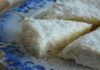 - Βάλτε ένα άλλο φύλλο χαρτιού ψησίματος σε επίπεδη επιφάνεια. Πασπαλίστε το χαρτί με καρύδα και 1 κουταλιά της σούπας κοσκινισμένη ζάχαρη άχνη.