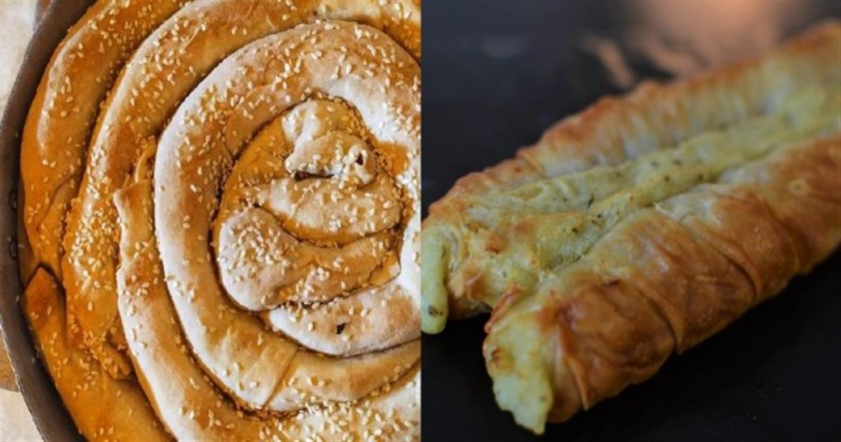 - Ανοίγουμε την κάθε μπάλα σε μακρόστενο σχήμα. Λαδώνουμε το φύλλο με ένα μείγμα από ηλιέλαιο και ελαιόλαδο.