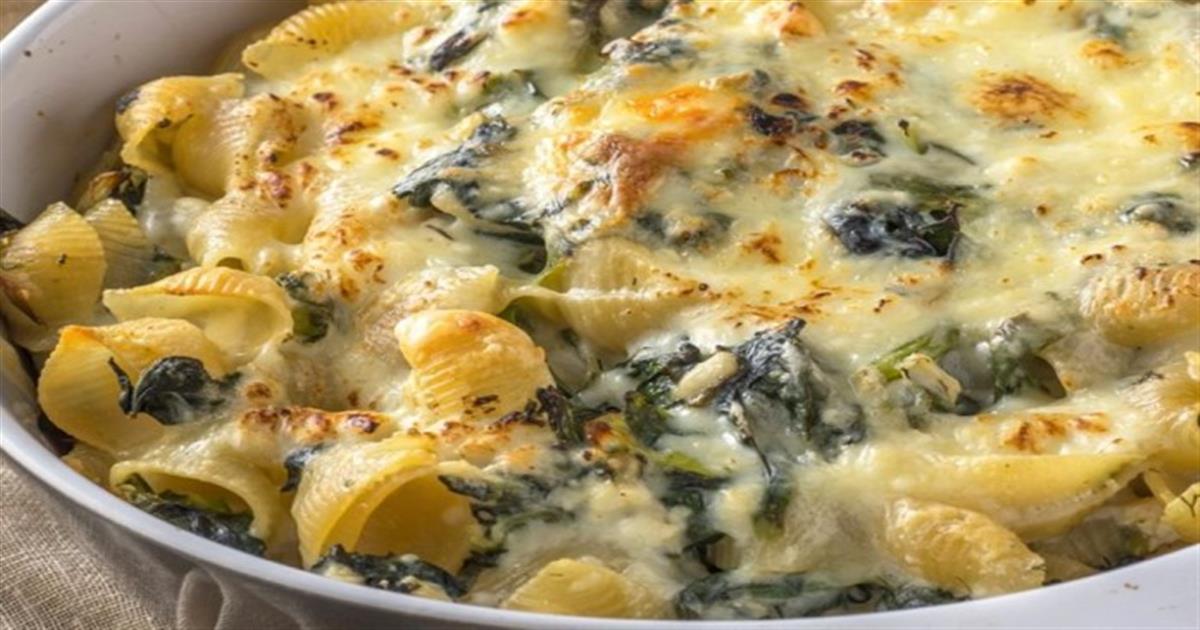 Συνταγή για μακαρόνια με κοχύλες. Τις κάνουμε γεμιστές με σπανάκι, φέτα και δυόσμο, περιχύνουμε με κρέμα γάλακτος και ψήνουμε στον φούρνο για ένα γεύμα εύκολο και εντυπωσιακό.