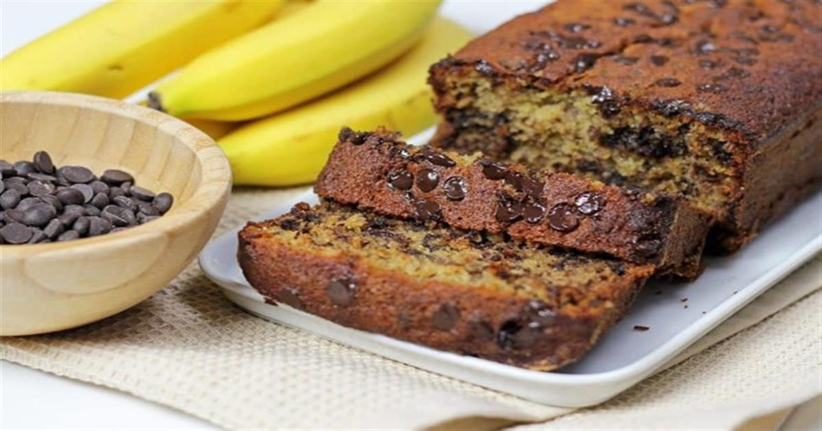 - Στη συνέχεια προσθέτετε το αλεύρι και ανακατεύετε να αναμειχθεί καλά με τα άλλα υλικά. Ρίχνετε την μπανάνα λιωμένη (με πιρούνι ή με το χέρι), στη συνέχεια τη μερέντα και τέλος τις σταγόνες κουβερτούρας. Ανακατεύετε ξανά το μείγμα να ενσωματωθούν τα υλικά.