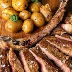 Κόβουμε σε χοντρές ροδέλες τις μελιτζάνες και τις πατάτε. Τις αλατοπιπερώνουμε, τις ραντίζουμε με ελαιόλαδο και τις ψήνουμε στη λαδόκολλα για μισή ώρα.