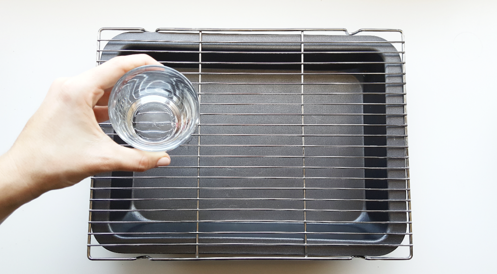 Βάλτε μια σχάρα πάνω από ένα ταψί. Ρίξτε ένα ποτήρι νερό μέσα και, σε αυτό το σημείο, προθερμάνετε τον φούρνο σας στους 200, στον αέρα.