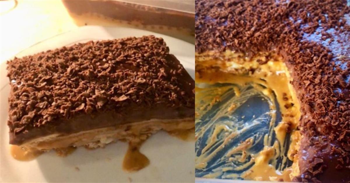 Πεντανόστιμο γλυκό ψυγείου με κρέμα βανίλια και σοκολάτα. Το ιδιαίτερο μυστικό για την υπέροχη γεύση του είναι η γέμιση καραμέλας. Με την ευκαιρία δείτε Τώρα που έσφιξαν για τα καλά οι ζέστες: Δροσερό γλυκό ψυγείου με ζελέ ανανά και κρέμα