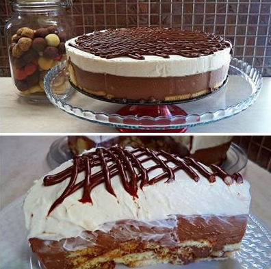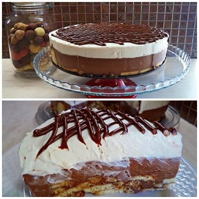Πεντανόστιμο δίχρωμο μπισκοτογλυκό τούρτα με ζαχαρούχο γάλα και merenda