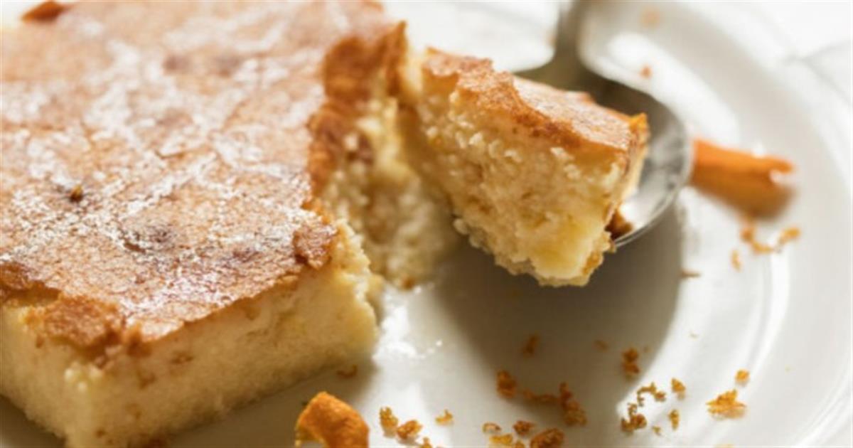 Μεταφέρουμε το γλυκό σε βουτυρωμένο χαμηλό ταψάκι διαστάσεων περίπου 35 x 25 εκ. και ψήνουμε για περίπου 50 λεπτά, μέχρι να ροδίσει.